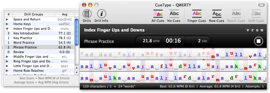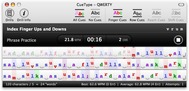 CueType marks your mistakes in red, letting you