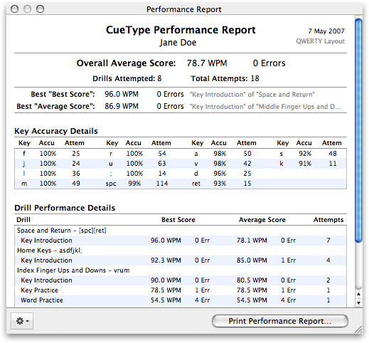 CueType maintains performance records for drills in each layout
